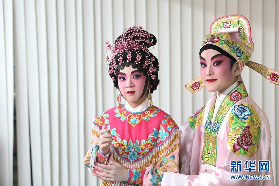 陸瑞徽(左)和利文喆在表演折子戲《艷曲醉周郎》(6月8日攝)。 聲輝粵劇推廣協(xié)會成立于2003年,是香港重要粵劇藝術(shù)團體之一,致力于向青少年推廣粵劇。協(xié)會目前有兩個初班,3個中班,一個青少年班?;泟∮址Q“廣東大戲”,表演技藝包括“唱做念打”,即唱功、身段、臺詞、武打,主要流行于廣東、廣西和香港、澳門等地區(qū)。2009年,粵劇被列入聯(lián)合國教科文組織人類非物質(zhì)文化遺產(chǎn)代表作名錄,今年正逢十周年。 新華社記者 吳曉初 攝