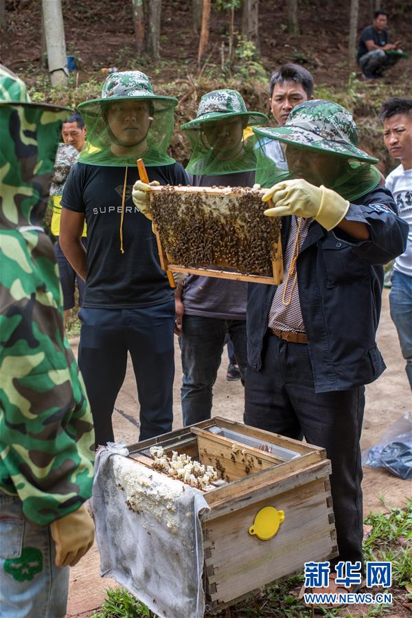 在云南省西盟縣勐梭鎮(zhèn)班母村中華蜂養(yǎng)殖基地,村民在學習養(yǎng)蜂技術(shù)(6月16日攝)。 精準扶貧的春風,吹到了西南邊疆。在云南省西盟縣的拉祜山寨,人們告別了吃不飽、穿不暖、沒有安全住房的日子。學習先進技術(shù),改變精神面貌,發(fā)展養(yǎng)蜜蜂、種甘蔗等甜蜜產(chǎn)業(yè),拉祜人的日子越過越甜。 新華社記者 秦晴 攝