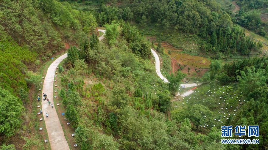 云南省西盟縣勐梭鎮(zhèn)班母村中華蜂養(yǎng)殖基地一景(6月16日無人機拍攝)。 新華社記者 胡超 攝