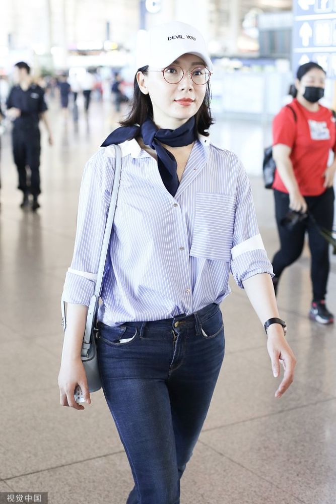 2019年6月30日,北京,陳數(shù)亮相機場,她身穿條紋襯衫搭配藍色方巾完美詮釋知性美,簡單造型非常耐看,已經42歲的她皮膚也是亮白嫩滑,堪稱凍齡美人了。