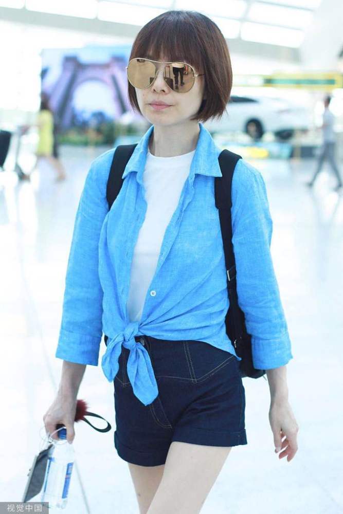 2019年5月25日,北京,魯豫現(xiàn)身機場。她梳著齊耳短發(fā)氣質(zhì)清爽干練,穿藍色襯衫內(nèi)搭白色t恤,夏日清涼氣息撲面而來。