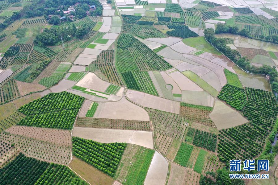 這是廣西全州縣鳳凰鎮(zhèn)鳳凰嘴渡口附近的田園(6月29日無人機拍攝)。 新華社記者 陸波岸 攝