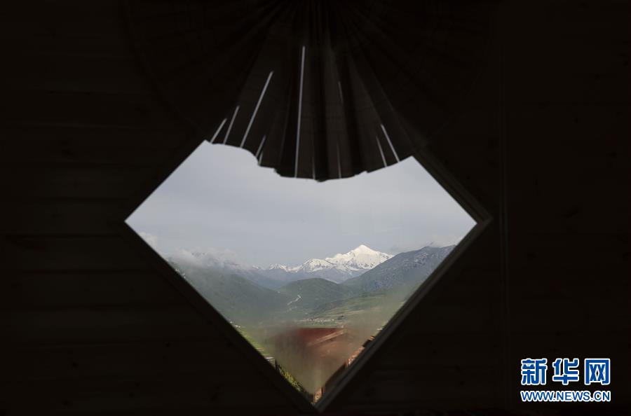 透過(guò)阿尼瑪卿雪山附近一個(gè)農(nóng)家樂(lè)的窗戶遙望阿尼瑪卿雪山(7月10日攝)。 新華社記者 費(fèi)茂華 攝