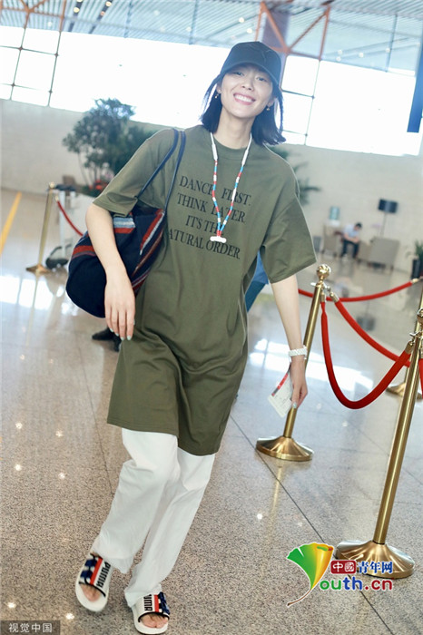 2019年7月23日,北京,劉雯現(xiàn)身機場。她頭戴棒球帽,身穿oversize上衣腳踩拖鞋,走慵懶隨性風,盡顯超模氣場,露出招牌笑容親切又有感染力。
