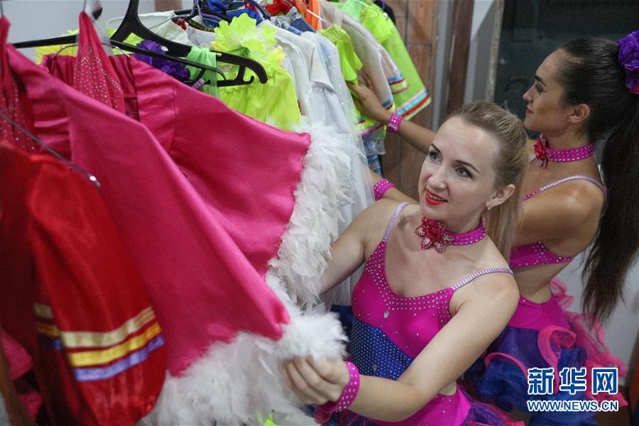 7月31日,列娜(左)在整理演出用的服裝。新華社記者龍雷攝