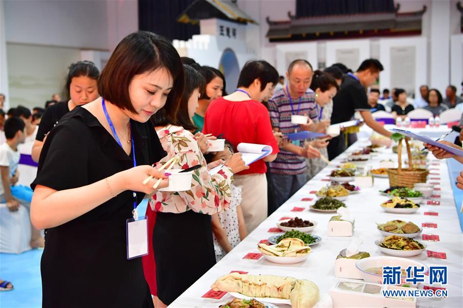 8月3日,在鄉(xiāng)村美食文化大賽現(xiàn)場,評委在對菜品進(jìn)行評定。