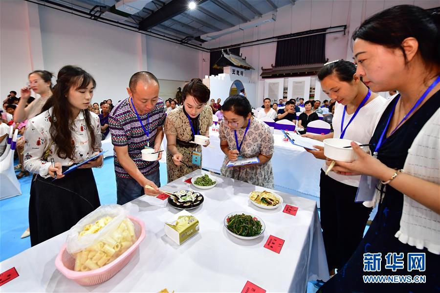 8月3日,在鄉(xiāng)村美食文化大賽現(xiàn)場,評委在對菜品進行評定。新華社記者馮大鵬攝