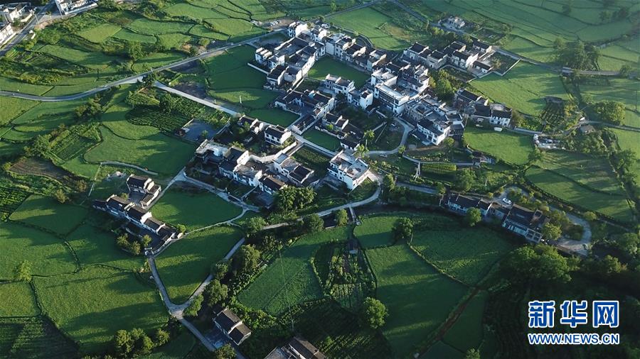 這是8月4日無人機(jī)拍攝的安徽黟縣宏村風(fēng)景區(qū)附近的村莊。新華社記者 張端 攝