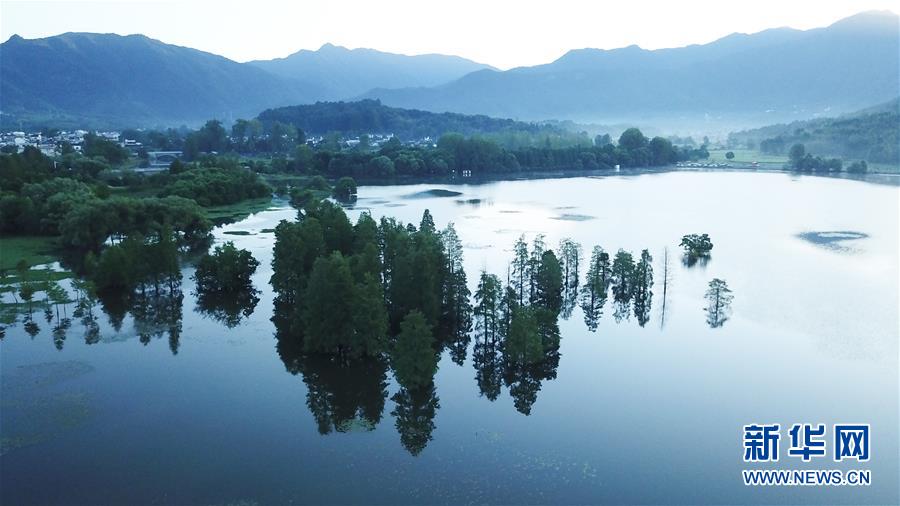 這是8月4日無人機拍攝的安徽黟縣宏村風景區(qū)晨景。新華社記者 張端 攝