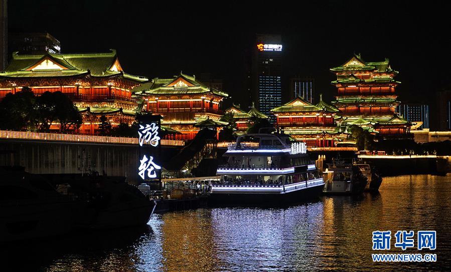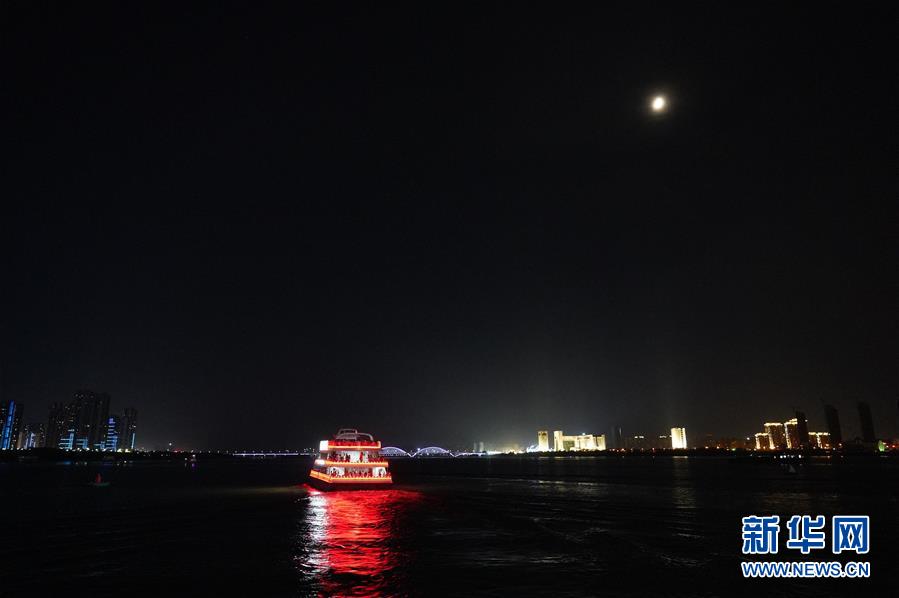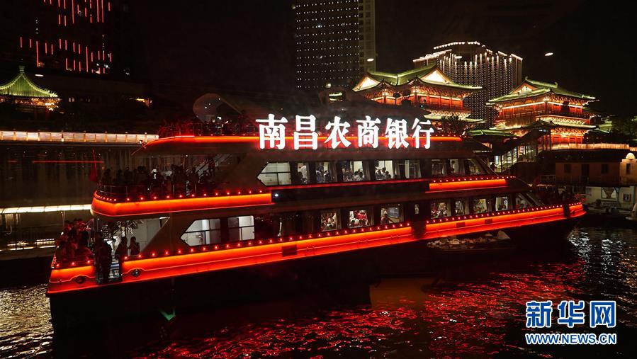 在江西南昌,游客在游輪上觀賞夜景風(fēng)光(8月6日攝)。 新華社記者萬象 攝