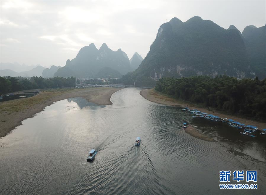 這是廣西桂林市陽朔縣興坪鎮(zhèn)漓江風(fēng)光(10月18日無人機拍攝)。 新華社記者 周華 攝