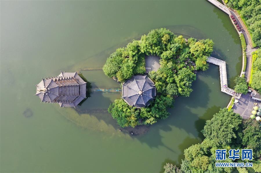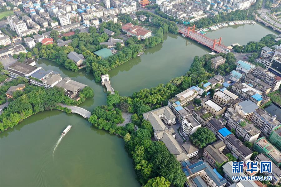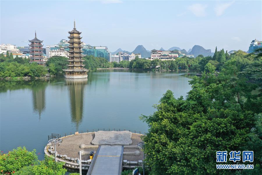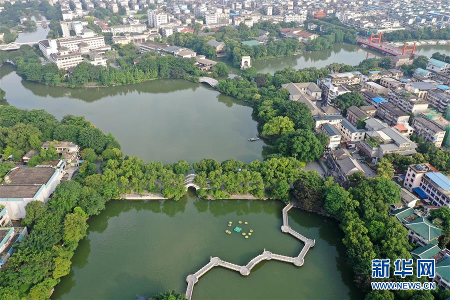 桂林市榕湖景觀(7月1日無人機拍攝)。 夏日時節(jié),廣西桂林市區(qū)內(nèi)的榕湖、杉湖、桂湖、木龍湖等地綠樹成蔭、景色迷人。 新華社記者陸波岸攝