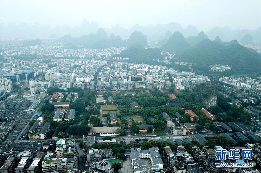 這是廣西桂林市的城市景觀(10月17日無人機拍攝)。 新華社記者 周華 攝