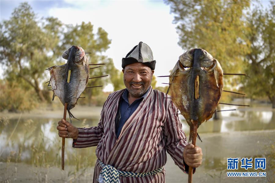 羅布人村寨位于新疆巴音郭楞蒙古自治州尉犁縣,塔里木河從這里流過,沙漠、胡楊、湖泊的奇妙組合吸引了不少游客。生活在這里的羅布人阿木東·艾不東更成為大家關(guān)注的焦點(diǎn)。 阿木東·艾不東61歲,聲音洪亮,面色紅潤,平時(shí)喜歡穿著羅布麻紡織而成的對襟長袍和羊毛氈制成的船形帽子,這是羅布人的傳統(tǒng)裝扮。 如今,許多羅布人不再以打魚為生,他們有的放牧,有的種植,有的開設(shè)店鋪……像阿木東一樣在沙漠中漁獵的羅布人已經(jīng)很少了。 制作羅布人傳統(tǒng)美食——紅柳烤魚是阿木東的拿手絕活。一根紅柳,穿起一條野魚,起一堆炭火,撒少許鹽巴,就可以靜待皮焦肉嫩的紅柳烤魚了。除了傳統(tǒng)口味外,阿木東對羅布烤魚進(jìn)行了改良?!拔颐刂屏艘环N烤魚醬,里面除了辣椒、鹽巴、孜然,還有其他佐料。”當(dāng)問起具體是哪些配方時(shí),阿木東笑著說:“還有就是塔里木河的味道!” 阿木東是一個(gè)閑不住的人。旅游旺季過后,他會制作卡盆(胡楊制作的獨(dú)木舟)模型、胡楊筆筒等,等旺季來臨再把這些小物件賣出去。 兩千年前,塔里木河與孔雀河載著天山、昆侖山的雪水,把羅布泊充盈得煙波浩渺。羅布人靠羅布泊水域和周圍的濕地及原始胡楊林繁衍生息。后來,塔里木河下游河床被風(fēng)沙淤塞,干旱斷絕了綠色。2001年,塔里木河流域近期綜合治理項(xiàng)目啟動(dòng)。隨著下游河道兩岸地下水位的抬升,相當(dāng)數(shù)量的胡楊從死亡的邊緣“醒來”,重新護(hù)佑這里的綠洲與百姓。 近幾年,阿木東生活的地方基礎(chǔ)設(shè)施大為改善,柏油馬路修到了塔里木河畔。前來領(lǐng)略大漠胡楊的游客也越來越多。據(jù)了解,截至7月底,尉犁縣今年已接待游客78萬人次,旅游總收入超過1.1億元,同比分別增長63.14%和119.42%。 新華社記者 趙戈 攝