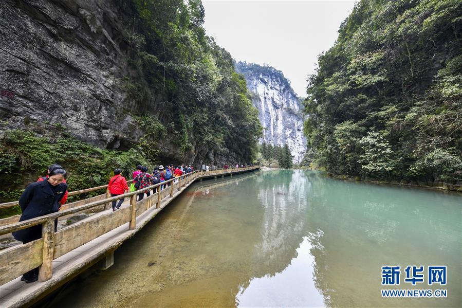 游客在天生三橋景區(qū)游覽(3月27日攝)。新華社記者劉潺攝