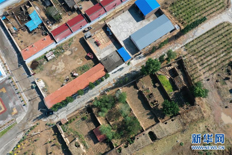 一條公路將東坪村的新村和舊村分隔開來(6月13日無人機拍攝)。 新華社記者 楊晨光 攝