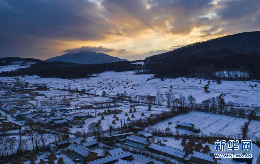 這是1月23日拍攝的二合雪鄉(xiāng)的日出(無(wú)人機(jī)拍攝)。新華社記者許暢攝