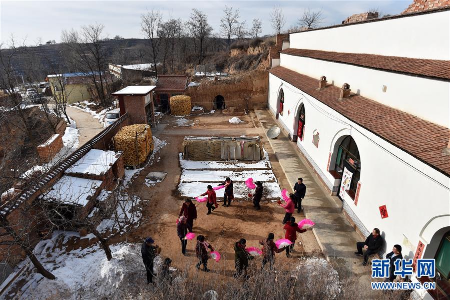 在武鄉(xiāng)縣大有鄉(xiāng)王莊溝村,村民們?cè)谂啪毠?jié)目(2月15日攝)。 新華社記者 詹彥 攝