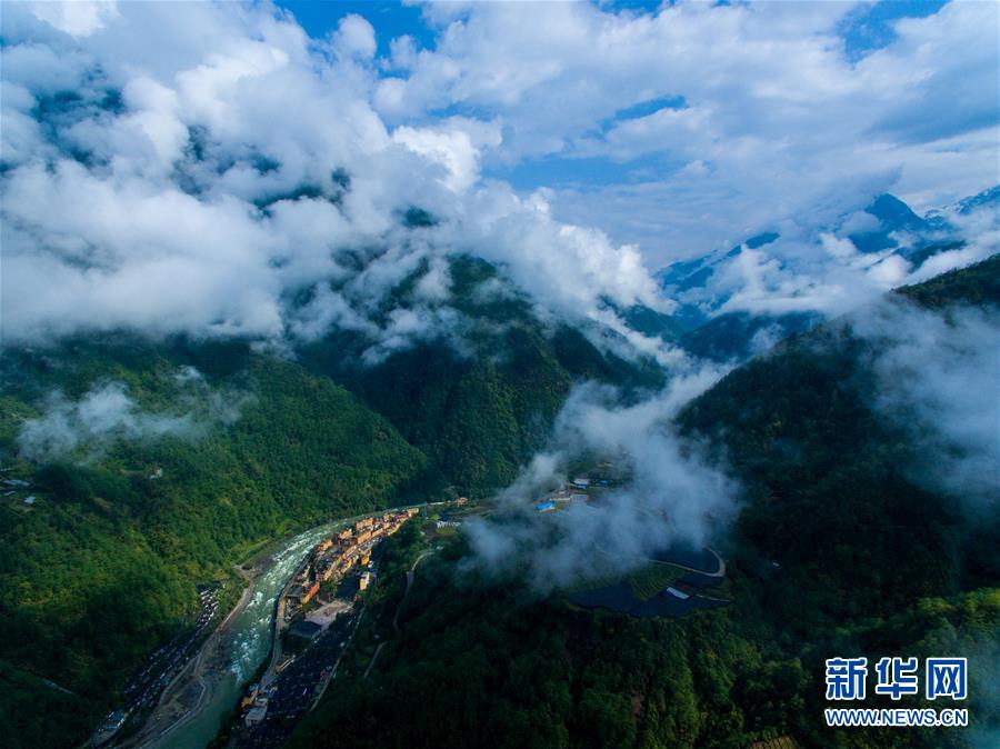 云霧繚繞的獨龍江峽谷,高黎貢山與擔(dān)當(dāng)力卡山夾江而立(4月18日無人機(jī)拍攝)。 新華社記者 江文耀 攝