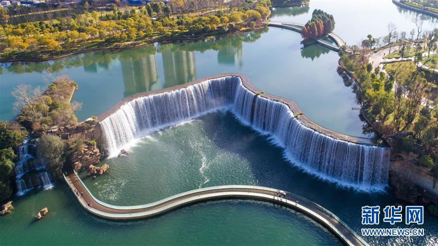 云南昆明瀑布公園一景(1月5日無人機(jī)拍攝)。 新華社記者胡超攝