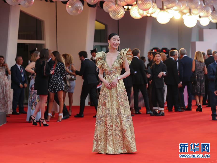 8月28日,在意大利威尼斯,中國演員倪妮亮相開幕式紅毯。新華社記者 張鋮 攝