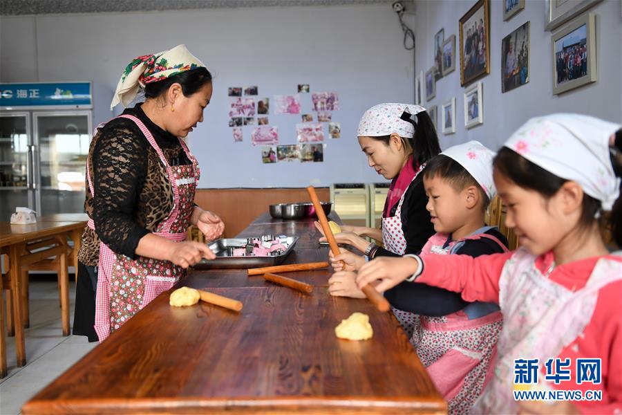 8月27日,付艷梅在教游客揉面團。新華社記者劉磊攝