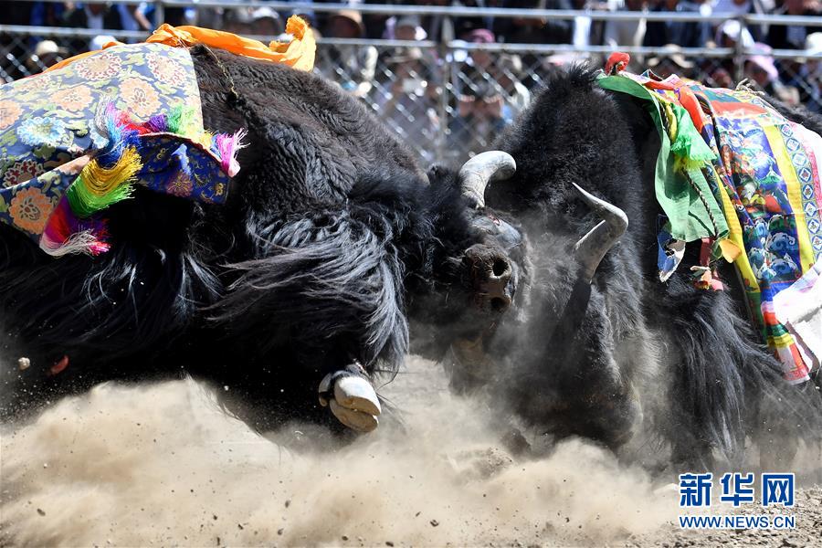 者下鄉(xiāng)斗牛節(jié)歷史悠久,是西藏自治區(qū)非物質(zhì)文化遺產(chǎn)。牧民為參加比賽的種牦牛披綢掛緞,將牛群趕到位于日喀則市白朗縣者下鄉(xiāng)的斗牛場(chǎng)上。參賽的種牦牛為了爭(zhēng)奪牛群的控制權(quán),在成群的母牛面前,更加好斗。角斗有的瞬間分出勝負(fù),有的持續(xù)幾十分鐘,最終勝出的被稱為“牦牛至尊”。