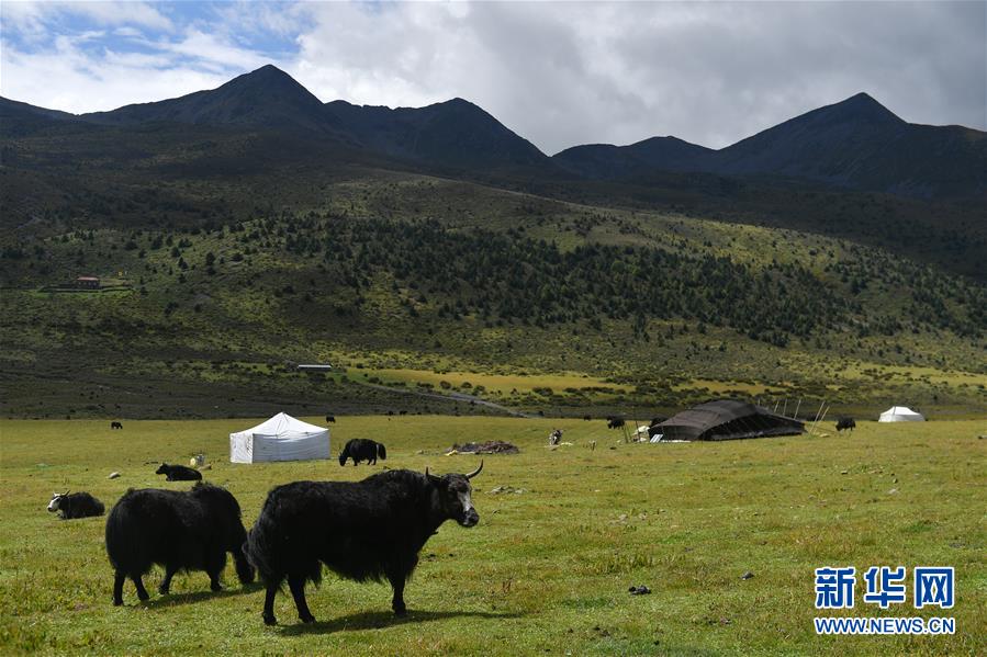 這是9月8日在四川省康定市呷巴鄉(xiāng)俄達(dá)門巴村附近拍攝的一處藏族牧民的牦牛牧場(chǎng)。新華社記者孫瑞博攝