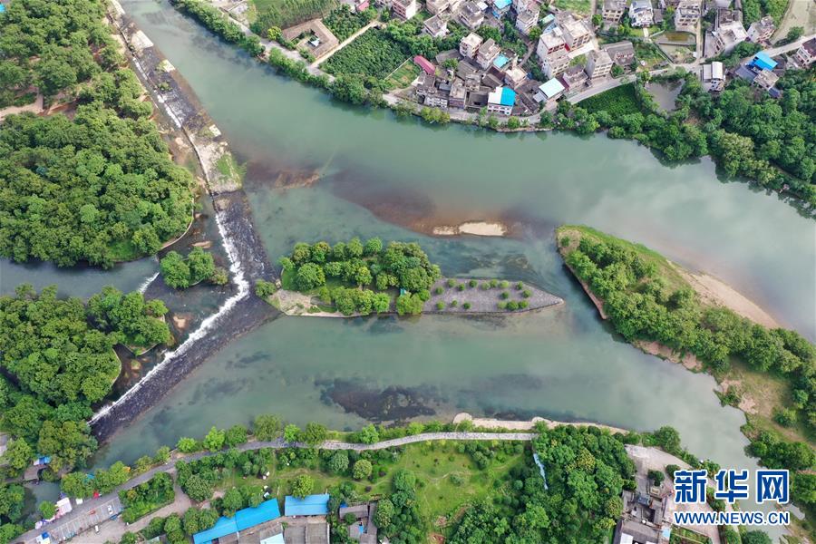這是6月30日無人機(jī)拍攝的廣西興安縣靈渠。 位于廣西興安縣的靈渠是世界上保存最完整的古代水利工程之一,至今仍發(fā)揮著農(nóng)田灌溉、排洪泄洪作用。2018年,靈渠入選世界灌溉工程遺產(chǎn)名錄。 新華社記者 陸波岸 攝