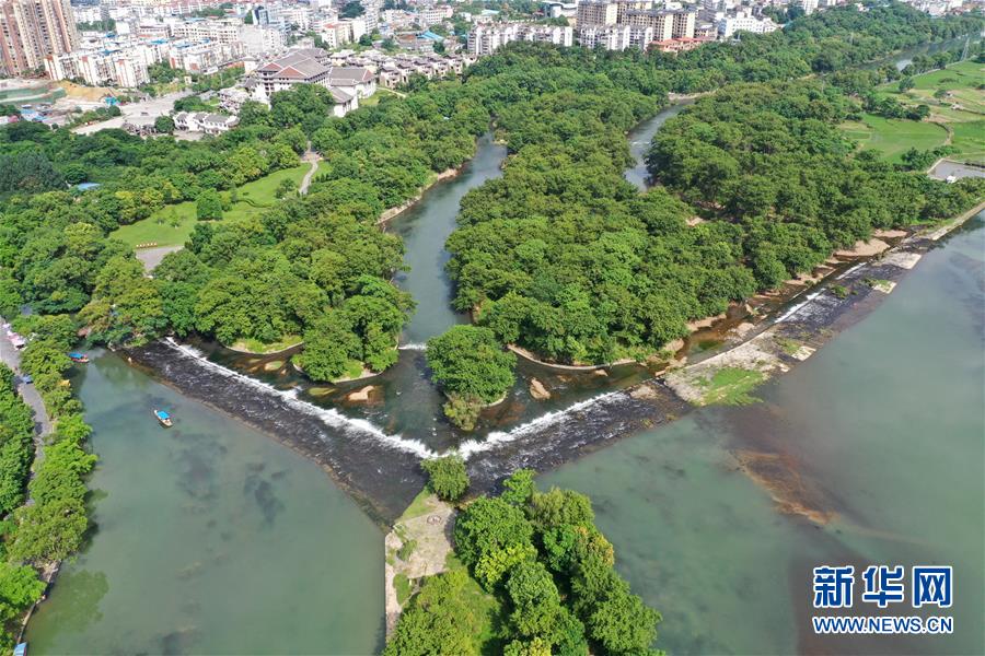 這是6月30日無(wú)人機(jī)拍攝的廣西興安縣靈渠。 位于廣西興安縣的靈渠是世界上保存最完整的古代水利工程之一,至今仍發(fā)揮著農(nóng)田灌溉、排洪泄洪作用。2018年,靈渠入選世界灌溉工程遺產(chǎn)名錄。 新華社記者 周華 攝