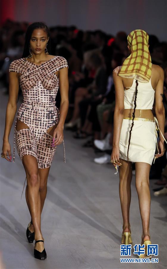 9月17日,在英國倫敦,模特在2020倫敦春夏時裝周上展示Charlotte Knowles品牌服飾。 新華社記者 韓巖 攝