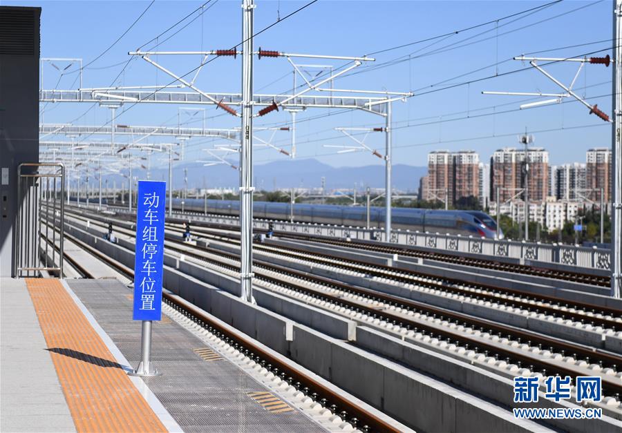 9月18日拍攝的京雄城際北京大興站站臺。新華社記者張晨霖攝