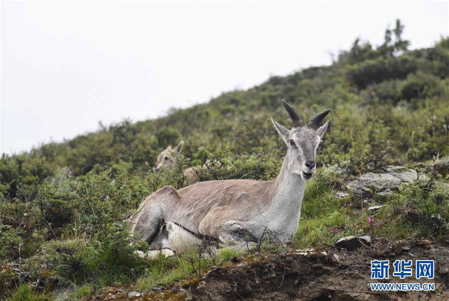 一只巖羊在西藏山南市洛扎縣色鄉(xiāng)海拔4000米左右的盤山路邊看著鏡頭(9月22日攝)。 新華社記者 晉美多吉 攝