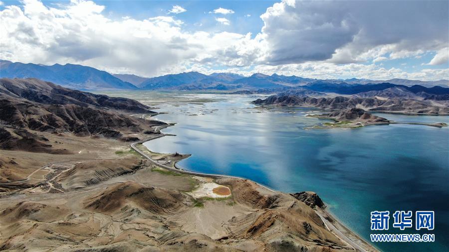 西藏阿里地區(qū)日土縣境內的班公錯(8月3日無人機拍攝)。新華社記者晉美多吉攝