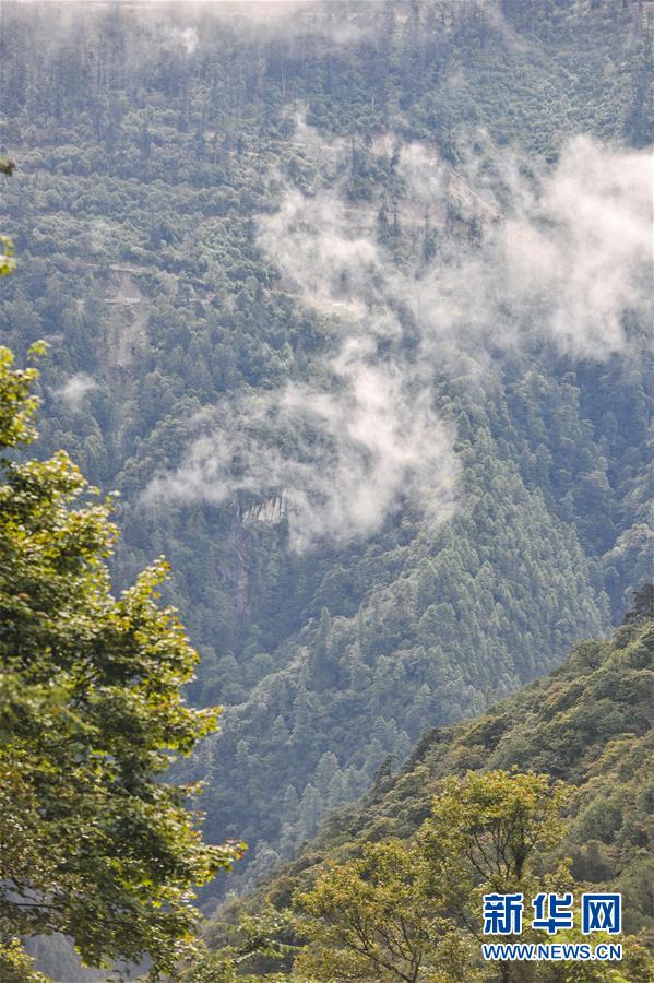 西藏山南市錯(cuò)那縣境內(nèi)波拉山南側(cè)的勒布溝,植被茂密、云霧繚繞,景觀豐富,美不勝收。 新華社記者 晉美多吉 攝