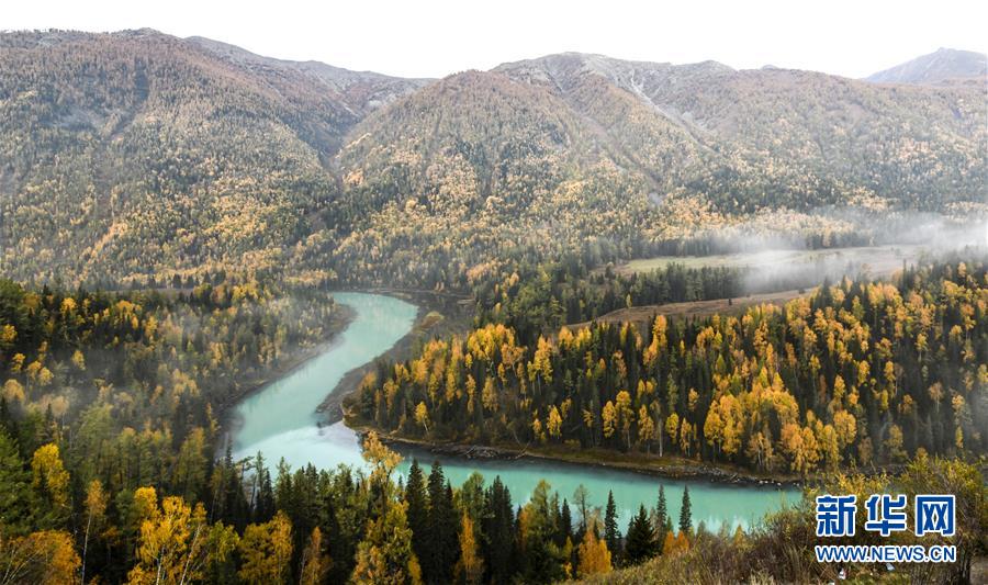 9月23日拍攝的喀納斯景區(qū)風(fēng)光。 新華社記者 王菲 攝