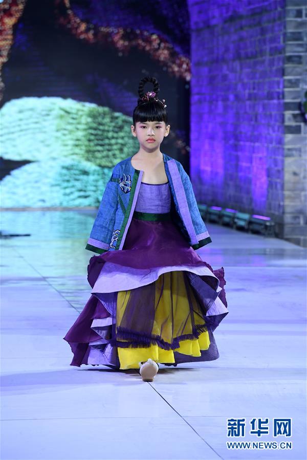 9月25日,小模特在榮昌夏布·張義超非遺時(shí)尚大秀上展示時(shí)裝設(shè)計(jì)師張義超的時(shí)裝作品 新華社記者 唐奕 攝