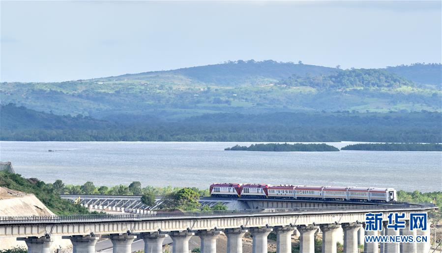2017年5月29日,一列肯尼亞蒙內(nèi)鐵路測試列車行駛在蒙巴薩特大橋上。由中國承建的蒙巴薩-內(nèi)羅畢標(biāo)軌鐵路(蒙內(nèi)鐵路)全長約480公里,于2017年5月通車。新華社記者孫瑞博攝