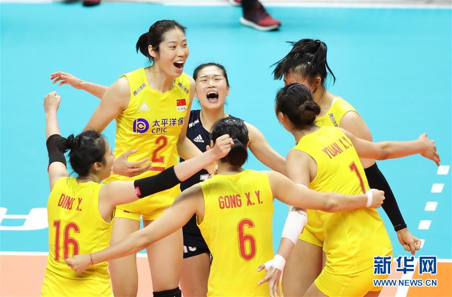 9月23日,中國(guó)隊(duì)球員在比賽中慶祝得分。當(dāng)日,在日本札幌舉行的2019年女排世界杯賽第二階段A組循環(huán)賽中,中國(guó)隊(duì)以3比0戰(zhàn)勝美國(guó)隊(duì)。新華社記者杜瀟逸攝