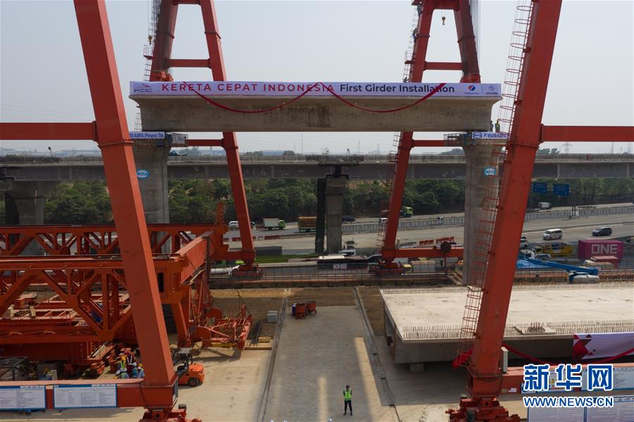 9月30日,雅萬(wàn)高鐵全線首榀箱梁成功架設(shè)。(無(wú)人機(jī)拍攝) 印度尼西亞雅萬(wàn)高鐵全線首榀箱梁9月30日架設(shè)成功,高鐵建設(shè)繼續(xù)穩(wěn)步推進(jìn)。雅萬(wàn)高鐵全長(zhǎng)142公里,最高設(shè)計(jì)時(shí)速350公里,2018年6月全面開(kāi)工,總工期為36個(gè)月,今年是施工建設(shè)全面提速的關(guān)鍵年。建成通車后,雅加達(dá)至萬(wàn)隆的時(shí)間將由現(xiàn)在的3個(gè)多小時(shí)縮短至40分鐘。 新華社記者 杜宇 攝