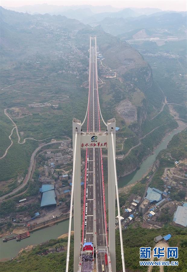 9月30日無人機(jī)拍攝的赤水河紅軍大橋。新華社記者劉坤攝