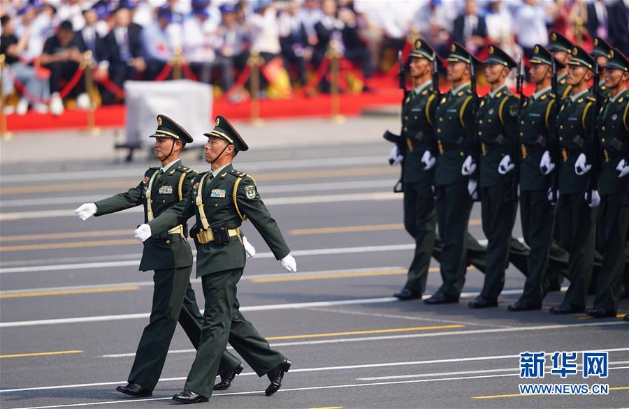 10月1日上午,慶祝中華人民共和國(guó)成立70周年大會(huì)在北京天安門(mén)廣場(chǎng)隆重舉行。這是行進(jìn)中的儀仗方隊(duì)。新華社記者王毓國(guó)攝