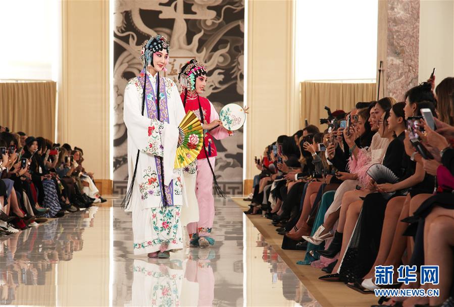 9月30日,在法國巴黎,昆曲表演亮相“蓋婭傳說·熊英”2020春夏系列發(fā)布會。新華社記者 唐霽 攝