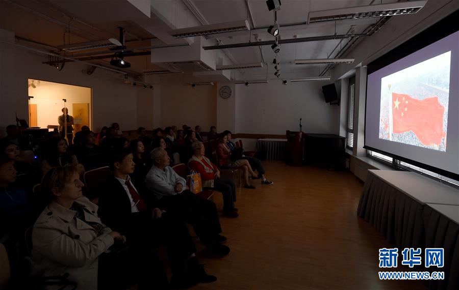10月1日,在奧地利維也納中國文化中心,觀眾們觀看電影《我和我的祖國》。新華社記者郭晨攝