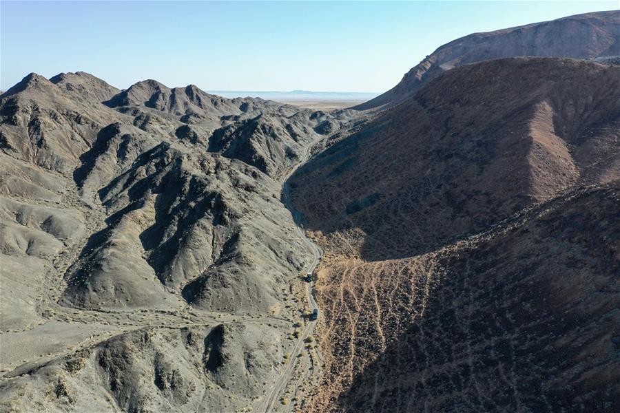 9月25日,內(nèi)蒙古自治區(qū)額濟納旗算井子邊境派出所民警登山進行巡護。新華社記者劉磊攝