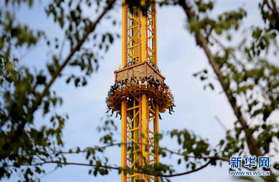 10月3日,游客在河北邯鄲市磁縣方特主題公園內(nèi)游玩。 當(dāng)日是國慶假期第三天,人們紛紛走出家門,樂享假期。 新華社記者 王曉 攝