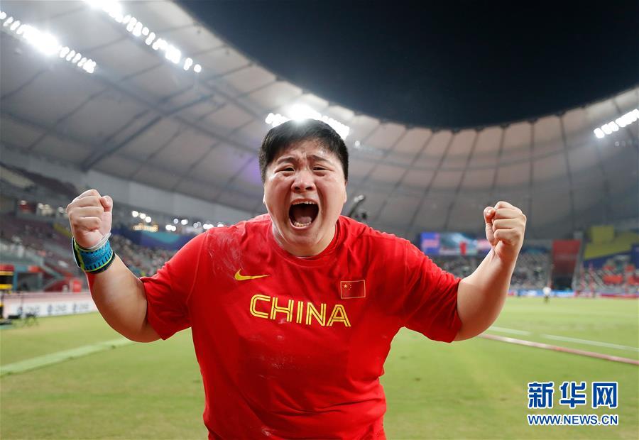 當(dāng)日,在卡塔爾多哈舉行的2019國(guó)際田聯(lián)世界田徑錦標(biāo)賽女子鉛球決賽中,衛(wèi)冕冠軍、中國(guó)選手鞏立姣以19米55的成績(jī)奪得冠軍。 新華社記者王麗莉攝