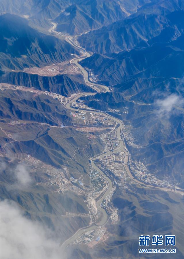 這是空中拍攝的高原景色(10月3日攝)。 國慶期間,來自國內(nèi)外的游客乘機前往西藏觀光旅游,在飛往拉薩的飛機上鳥瞰高原,欣賞高原獨特的美景。 新華社記者 普布扎西 攝