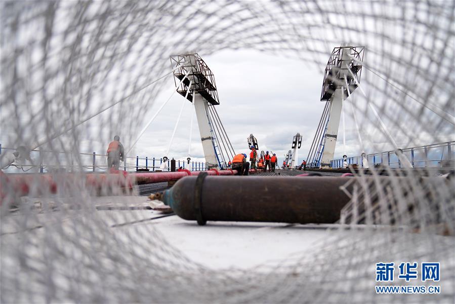 工人在大橋上進(jìn)行橋面鋪裝施工作業(yè)(8月19日攝)。新華社記者 王建威 攝