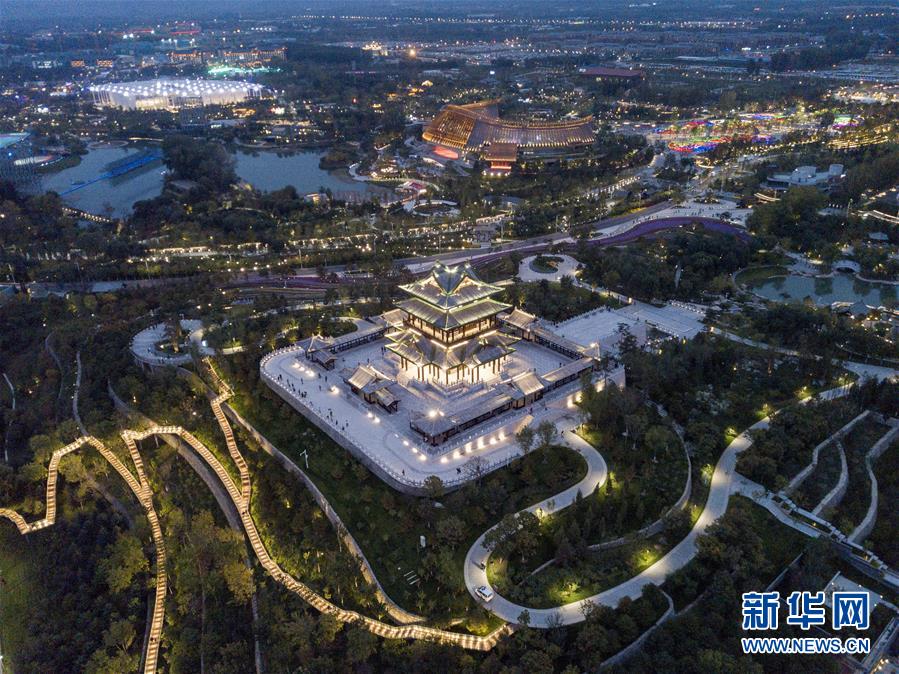北京世園會(huì)園區(qū)(10月7日無人機(jī)拍攝)。新華社記者王毓國(guó)攝